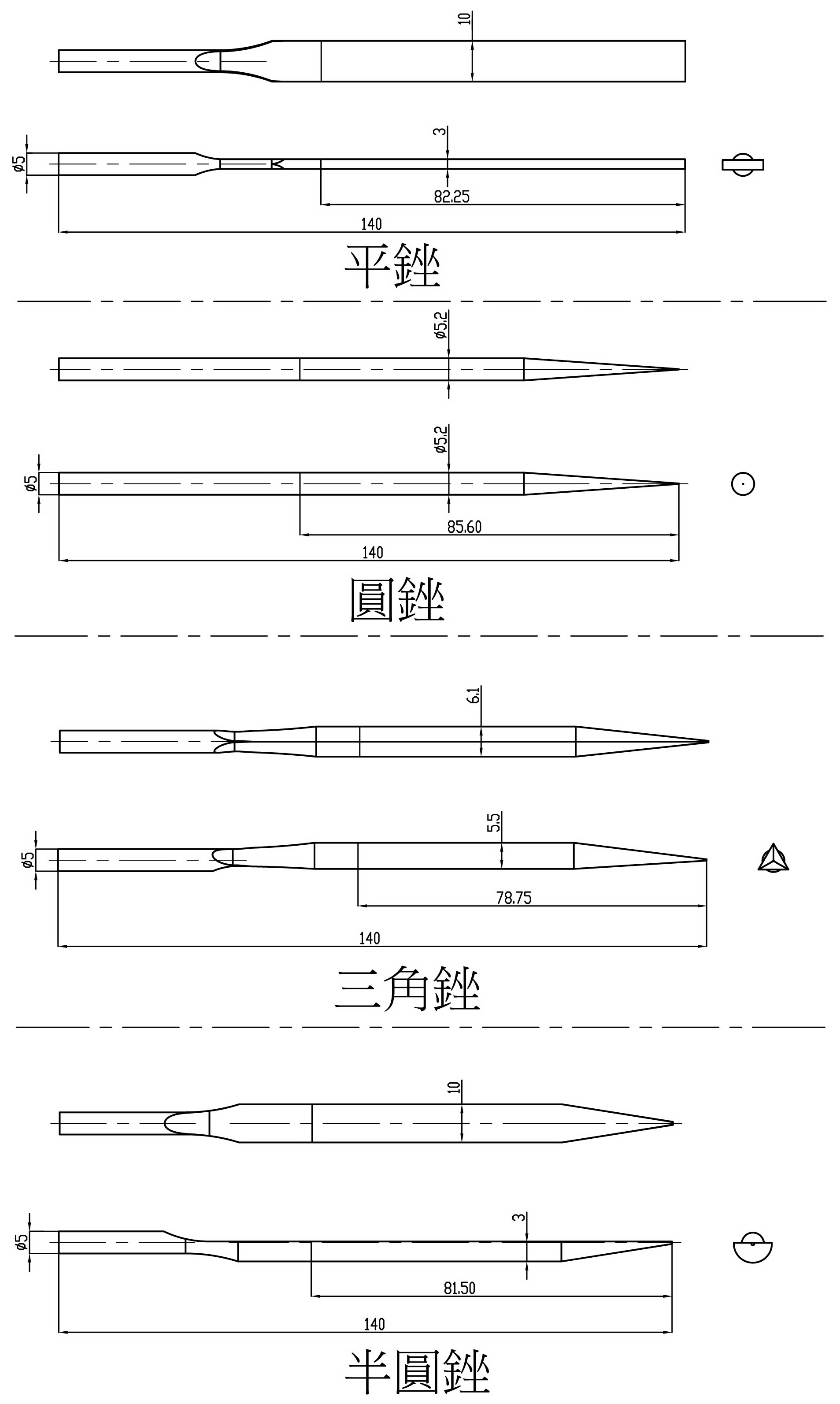 *本機械可迅速去除因放電加工或線切割加工後,金屬表面所產生的硬化表層,尤其適合加工模具之溝或槽的底部,壁部或